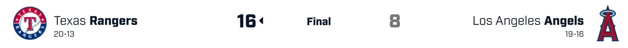 Our Texas Rangers won the series against their division rivals, the Los Angeles Angels, taking two of three games. They should have swept the series as they had a 4-1 lead going into the 9th inning of the first game, but their closer Will Smith struggled, and the Angels managed to tie the game before winning in the 10th inning.