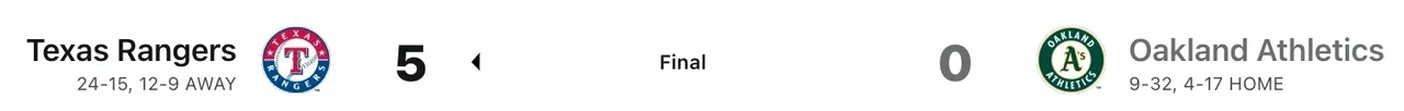 Our Texas Rangers defeated the Oakland Athletics on Saturday, securing our second win in three days against the Oakland A’s. Nathaniel Lowe and Ezequiel Duran hit home runs for the Rangers, while starting pitcher Jon Gray took a no-hitter into the seventh inning. Texas scored early with an RBI single by Lowe and a sacrifice fly by Marcus Semien to take a 2-0 lead. Lowe added a solo home run in the fourth inning, and Duran hit a two-run homer in the ninth. Gray pitched eight innings, allowing only three hits and striking out five. The A’s had their chances, but a strong defensive play by Adolis Garcia in right field prevented a run in the seventh inning. The Rangers put on a slug fest out-hitting the A’s 9-5 and was the driving factor for this game 3 victory.